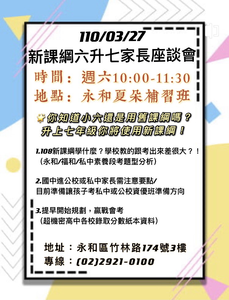 永和夏朵2021小六升七 各大國中升學率與108新課綱學制說明會