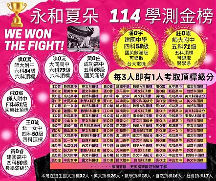 114年學測再創佳績 狂賀 每3人即有1人考取頂標